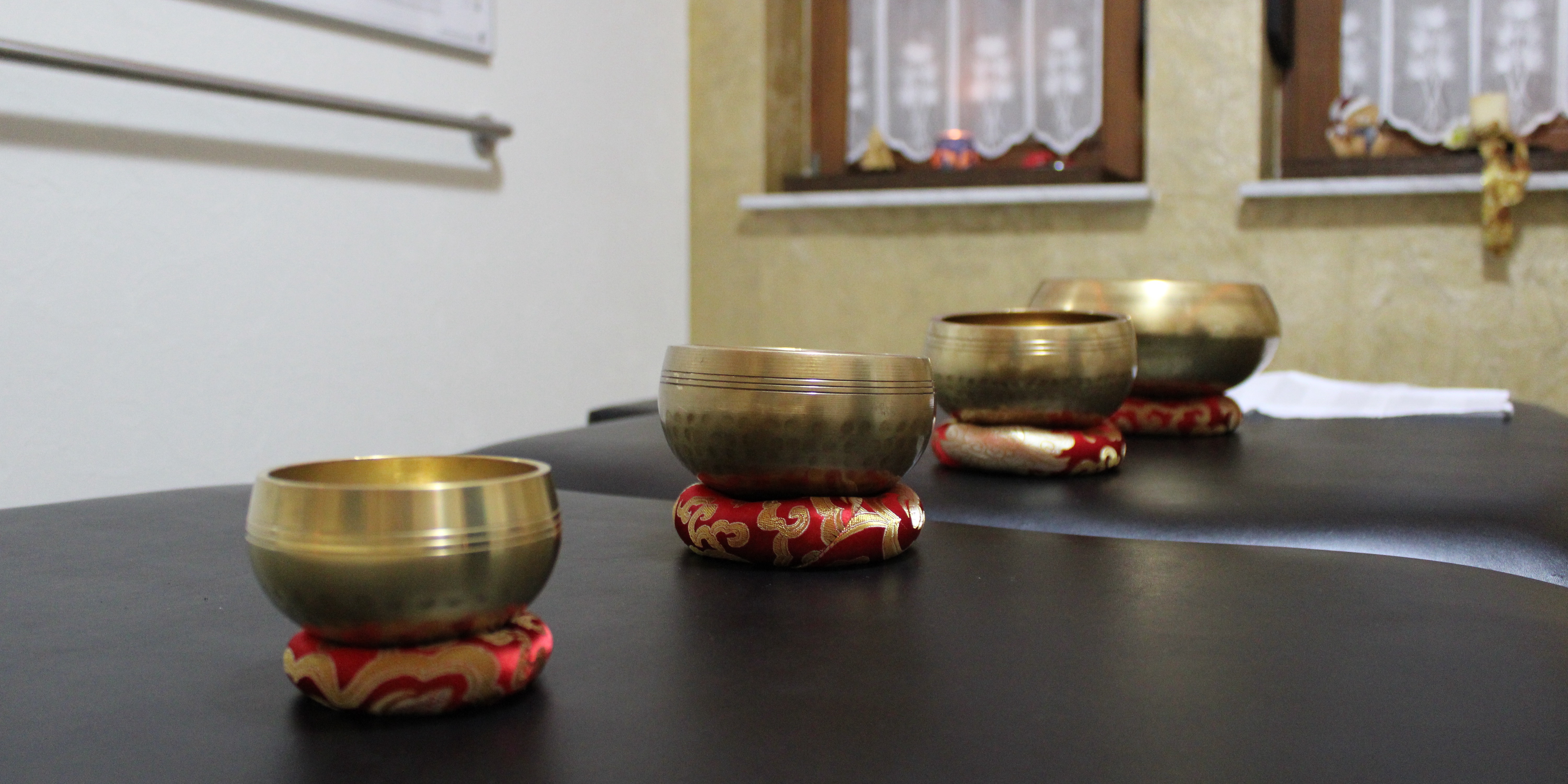Während einer Klangmassage werden die harmonischen Klänge der Schalen direkt auf den Körper übertragen.